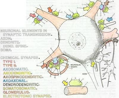 The most of the neurons are of general purpose type operating as just explained, but they could have different configurations of the input synapses.