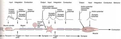Another special neuron is motor neuron with his Axon ending directly on the muscle. His operation together with the muscle could be described as digital to analogue converter.