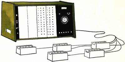 It consist essentially of a number of responder units, one for each student, which are connected by means of multi core cable to a monitoring consol at the teacher desk.